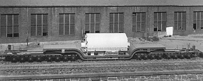 The FD-2 flat car in service with a load from Westinghouse.
